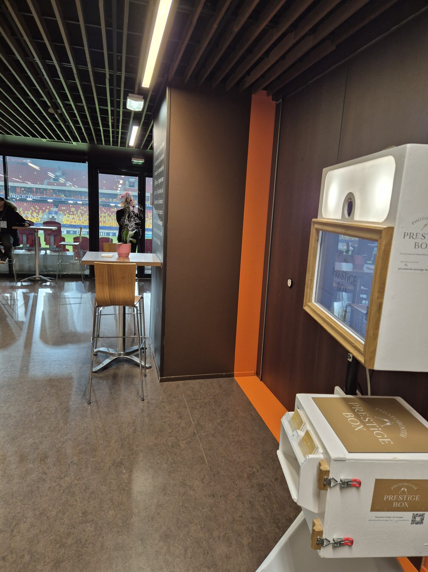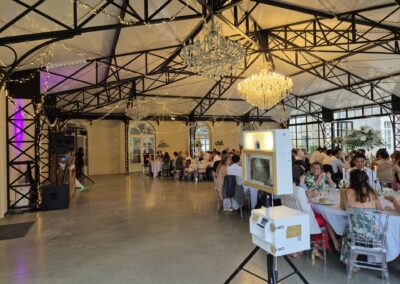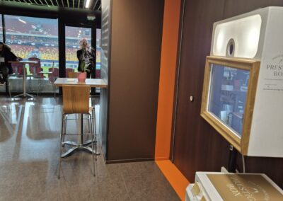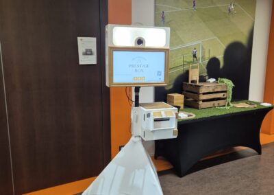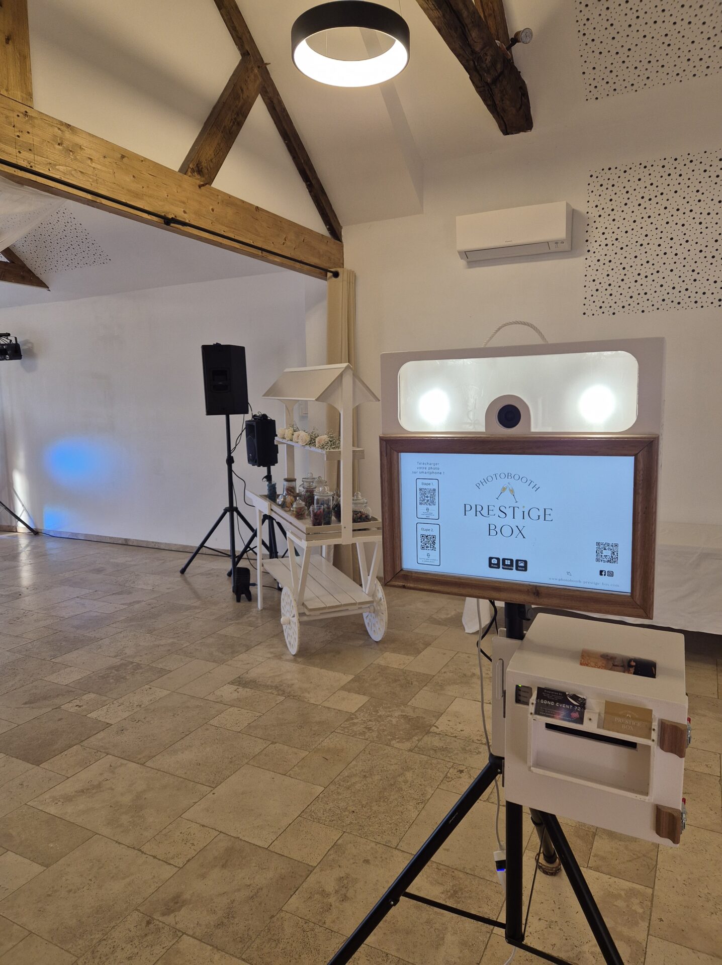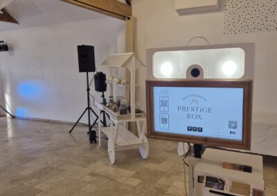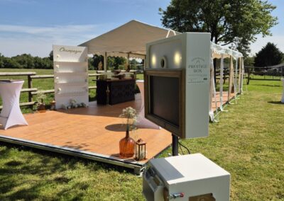 Bien qu’elles soient équipées de grand écran tactile, les bornes Photobooth Prestige Box restent compact en ne gardant que l’essentiel. Un écran tactile, un ordinateur, un appareil réflex Canon, une grande façade de lumière équipée de 2 led & 1 flash. Leur conception en bois est également plus légère ce qui facilite le transport et l’installation. Il suffit de poser l’imprimante et la borne sur le trépied, puis de la brancher sur une prise électrique et votre photobooth est prêt pour l’utilisation !