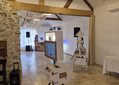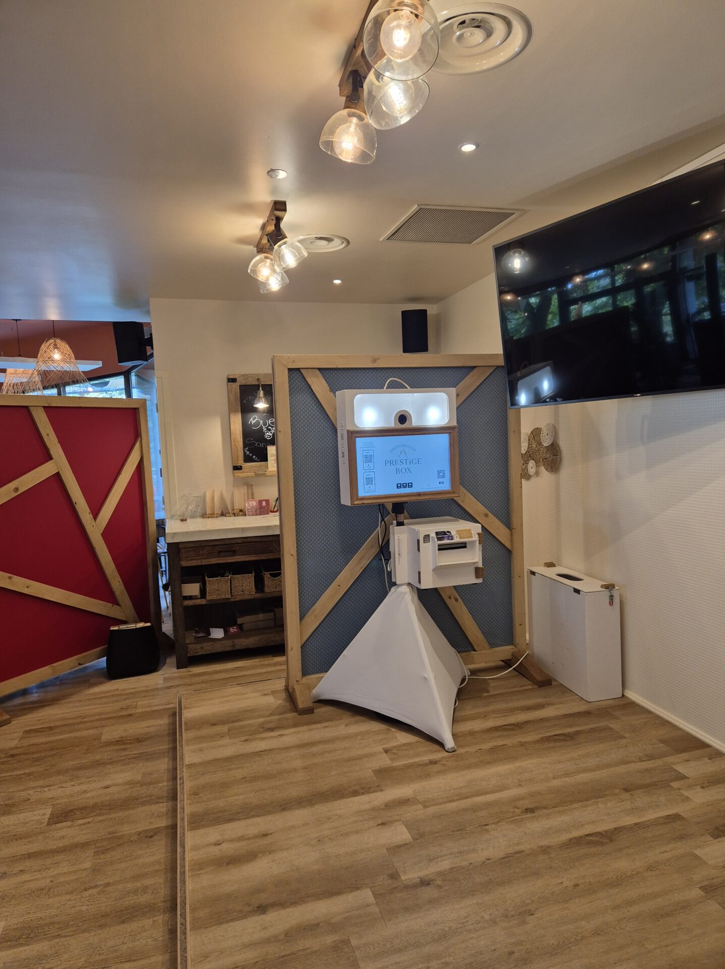 Borne photo avec grand écran tactile 15,6″ et petite imprimante Canon Selphy. Design sobre et tendance avec moulure en bois de chêne brut. 108, 216 ou 324 impression photo 10x15cm. Vous retrouverez aussi toutes vos photos de qualité au format numérique. Vous pouvez aussi consulter vos photos sur la galerie pendant votre événement !